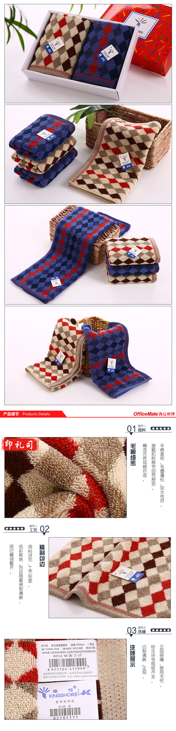 金号毛巾 60*30cm中长巾 蓝色全棉花式线提缎面巾 单条