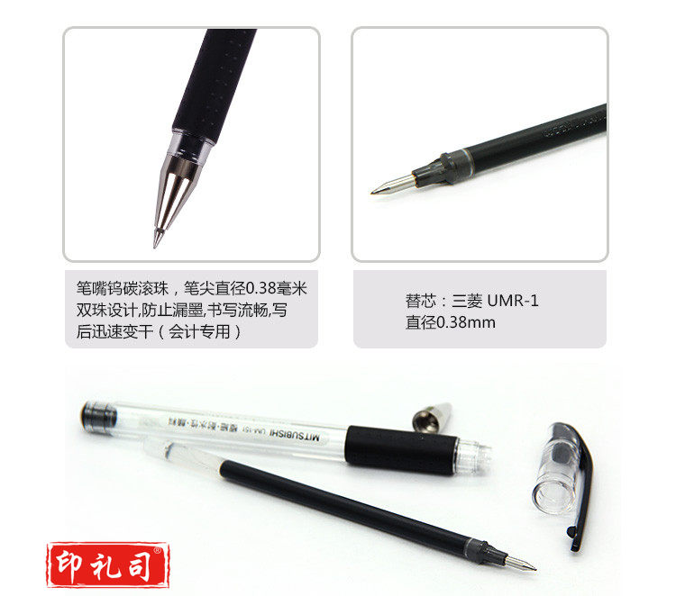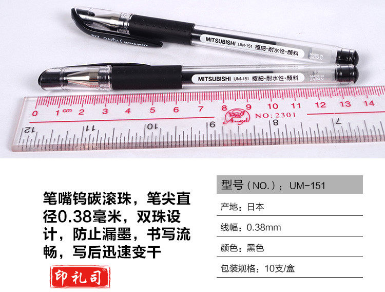 三菱 UM-151 红色水笔0.38mm 中性笔 签字笔(替芯UMR-1)