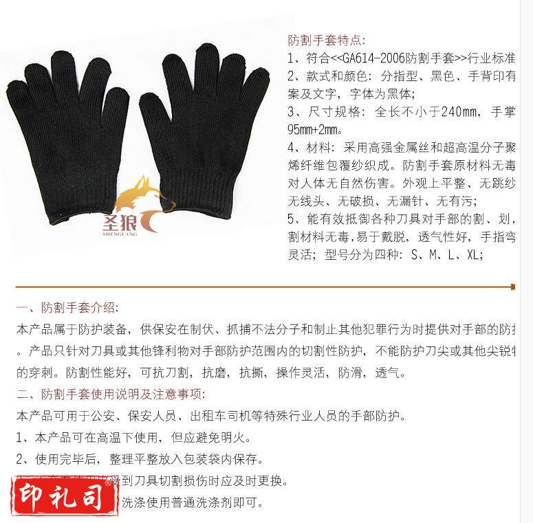 5级加厚防割手套 防砍手套 劳动防护安全手套