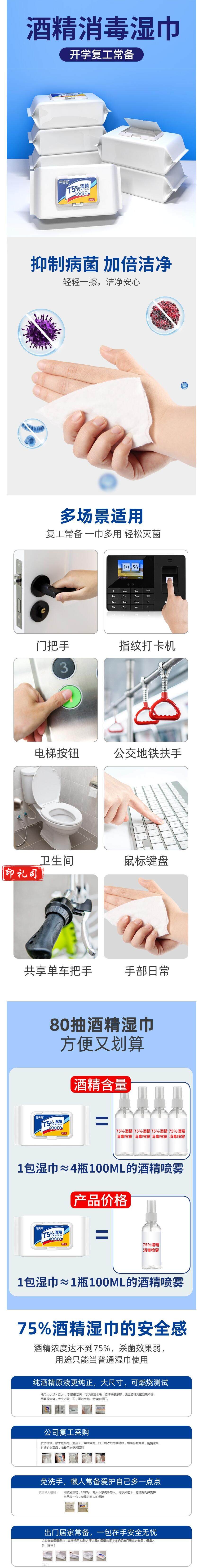75%湿巾 便携式杀菌消毒湿巾纸巾80片/包