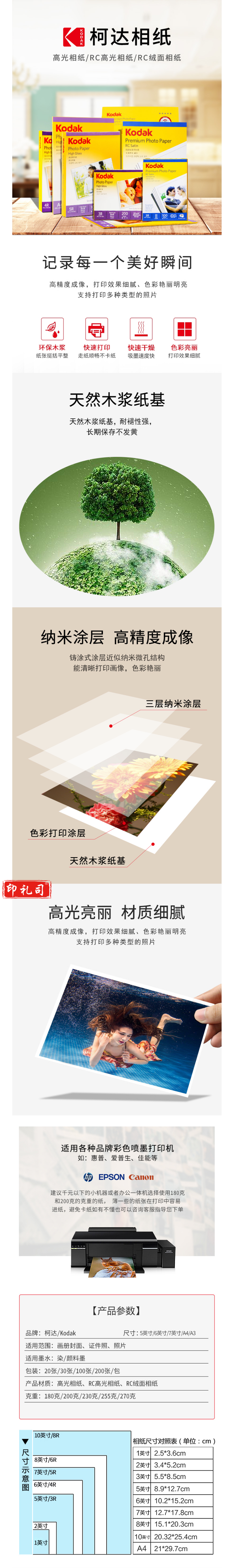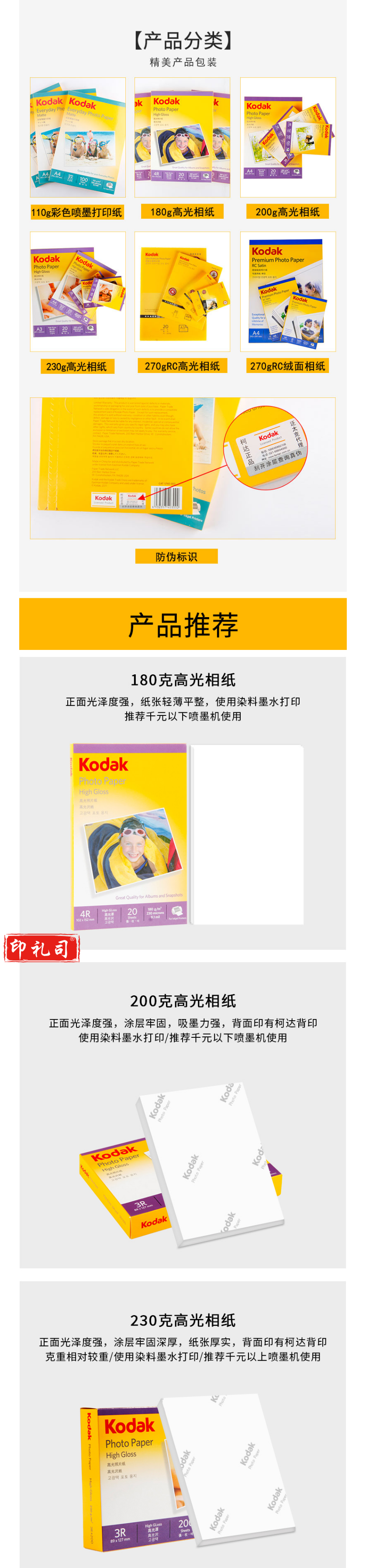 柯达Kodak A6 高光面照片纸/喷墨打印相片纸/相纸