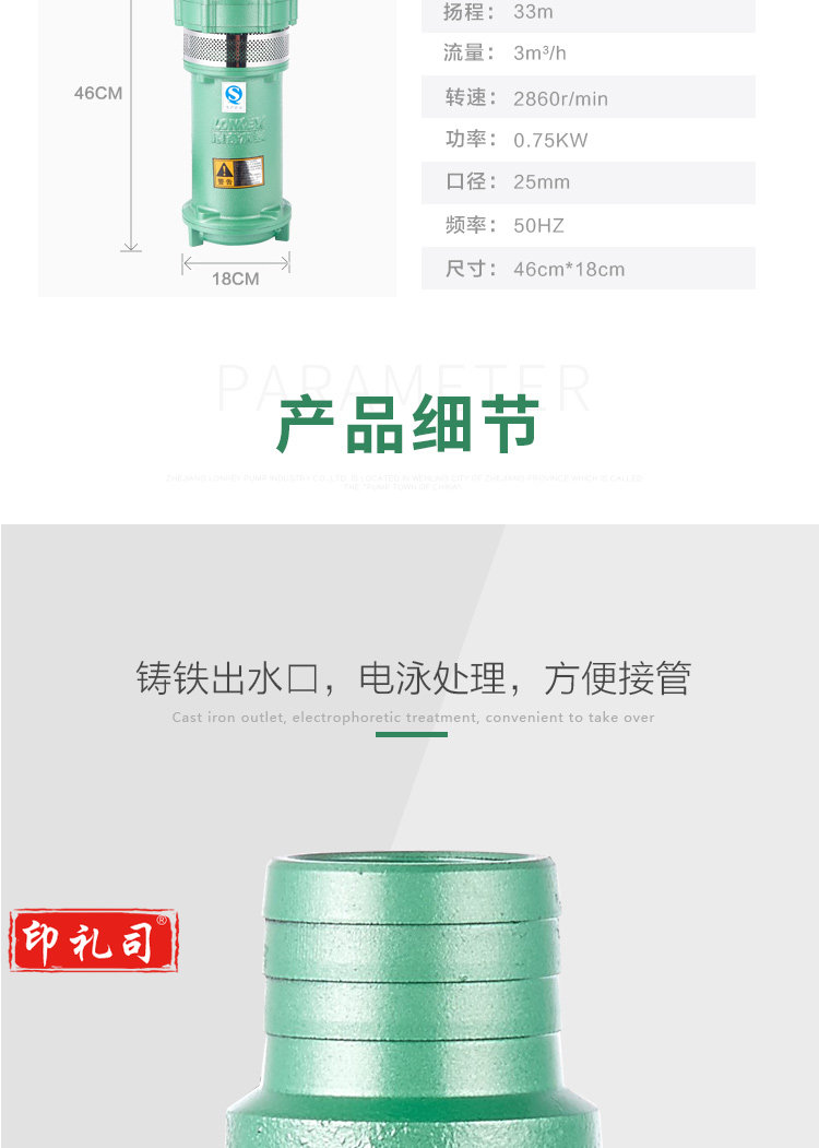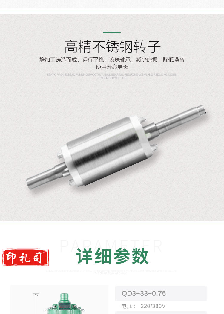 浪奇QD型多级潜水泵农田家用潜水泵井用取水灌溉高扬程防汛抗旱抽水泵
