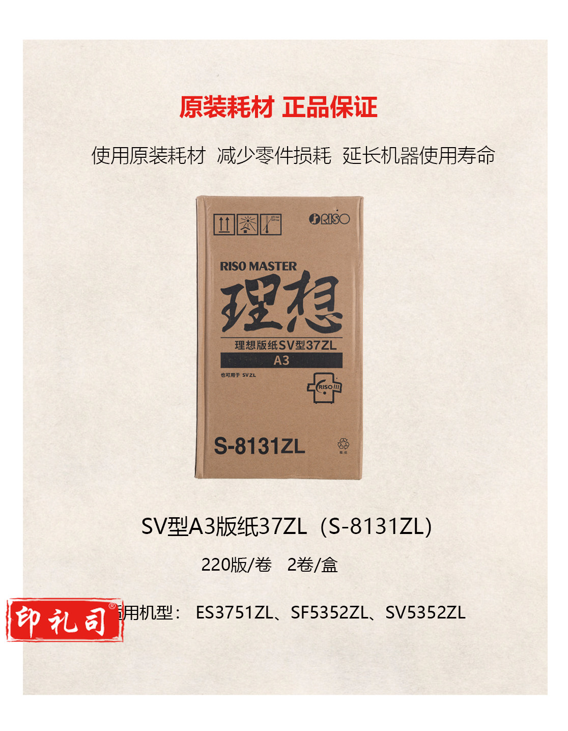 理想/RISO SV型A3版纸37ZL(S-8131ZL)适用于:SV租赁机A3型 一盒装 每盒2卷