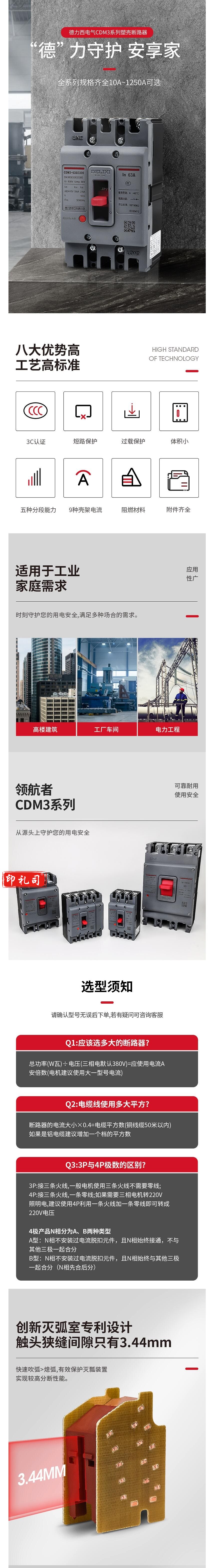 德力西 4P 160A 空气开关 塑壳断路器