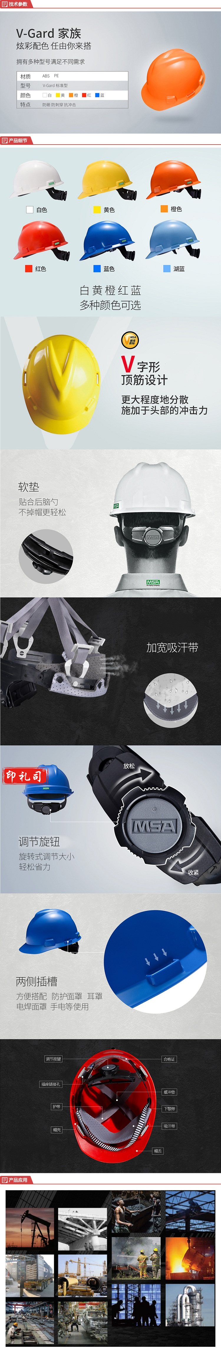梅思安10172892- 红色帽衬分离款V-Gard ABS标准型安全帽工地防护防砸防坠落