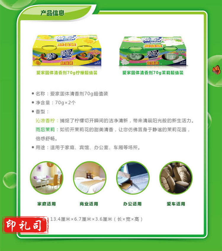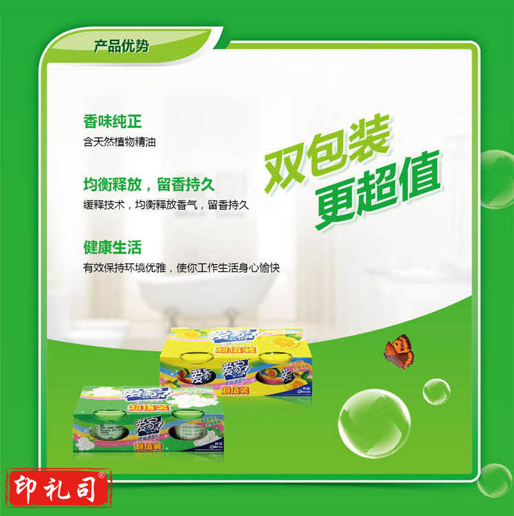 爱家 固体清香剂 快乐柠檬 70g 固体 空气清新剂卫生间除臭 每箱30盒