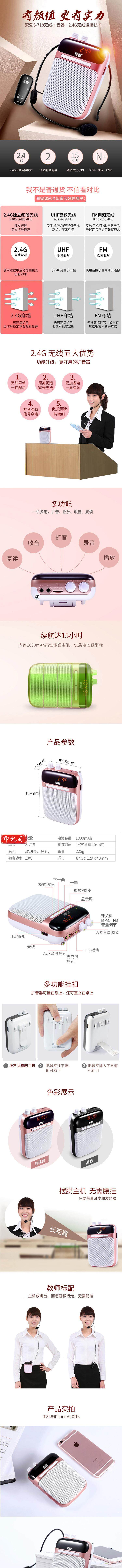 索爱 S-718 小蜜蜂扩音器2.4G无线便携大功率教学教师专用腰挂U盘播放器音箱(玫瑰金、睿智黑)