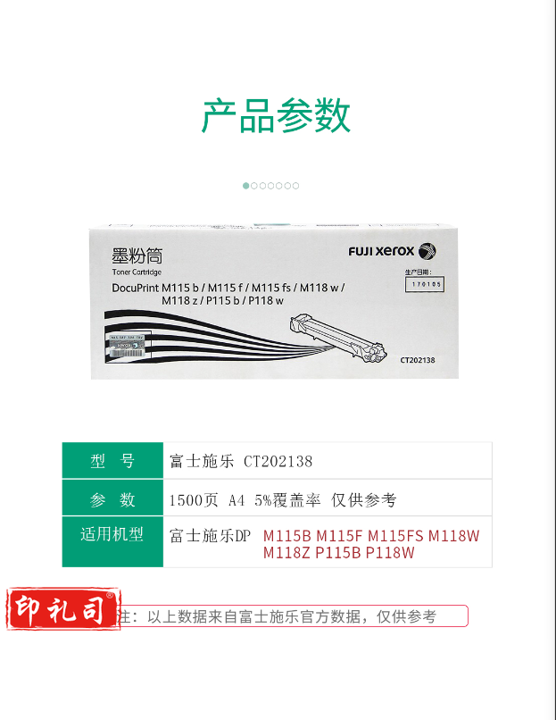 富士施乐(Fuji Xerox)P115b/M115b/P118w/M118w/M118原装墨粉硒鼓 CT202138墨粉(1500页)