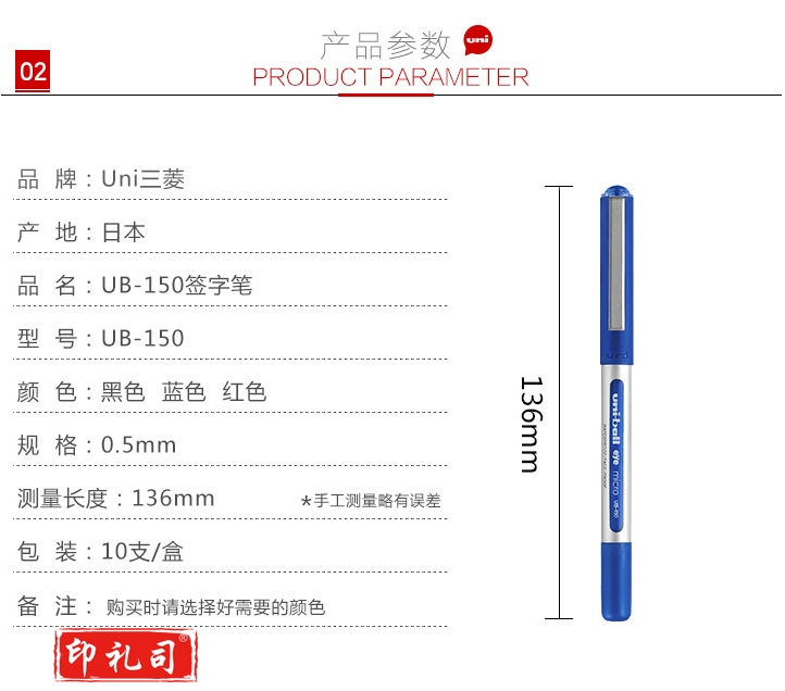 三菱(Uni)UB-150 蓝色 直液式走珠笔签字笔 0.5mm 10支装