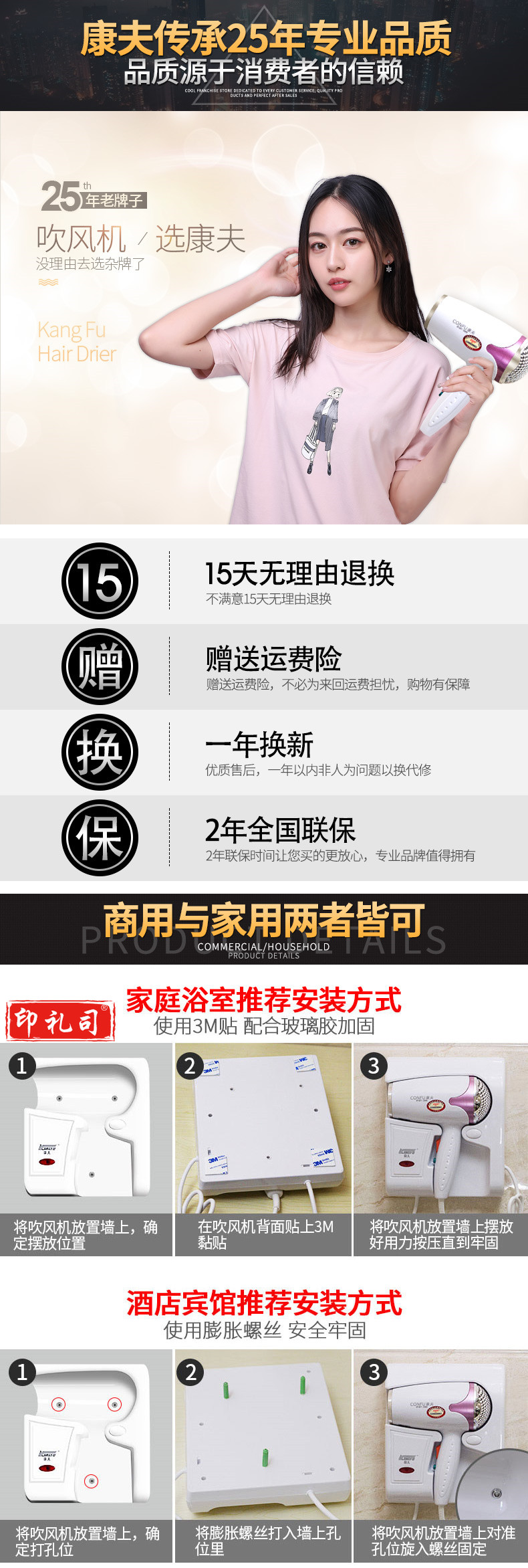 酒店宾馆电吹风机壁挂式浴室卫生间(不含安装)