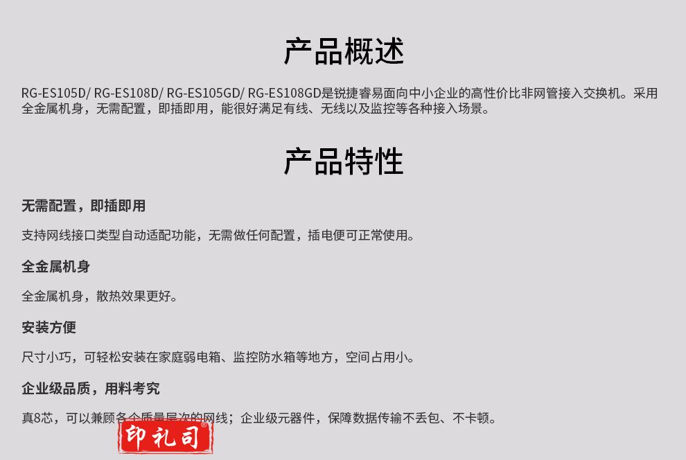锐捷 RG-ES108D 8口百兆非网管企业级交换器