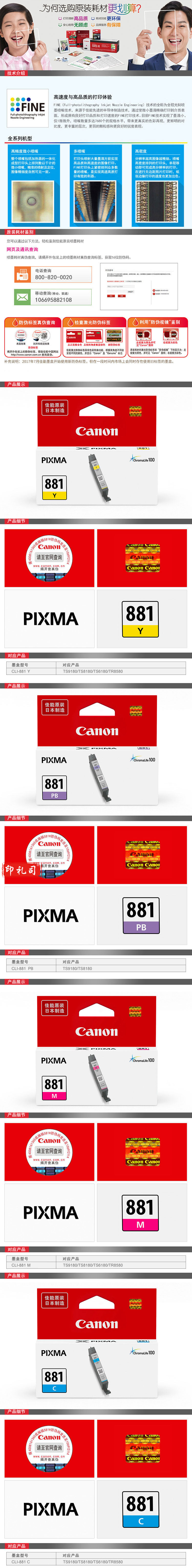 佳能 CLI-881BK 灰色 墨盒 适用TS8280、9180、8180、6180、TR9580