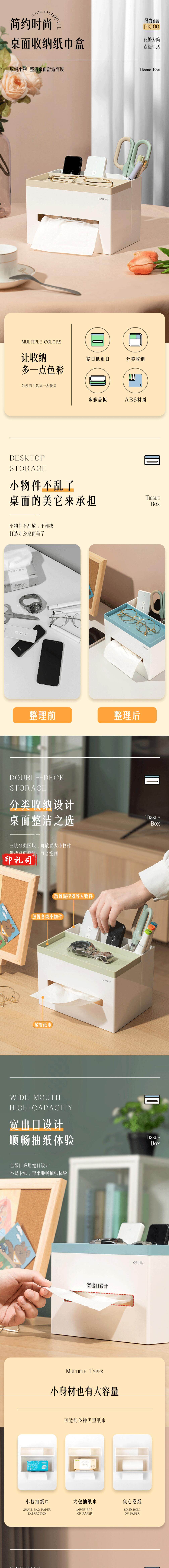 得力 PK100 桌面收纳纸巾盒 分区收纳盒 米白色197*144*135mm