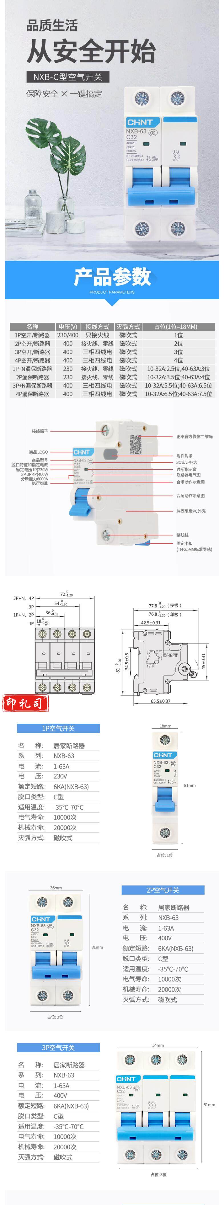 正泰(CHNT)NXB-63-3P-C25 家用空气开关 过载空气开关