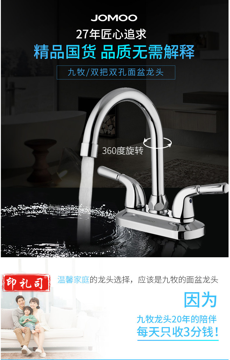 九牧2203-250水龙头浴室双把双孔面盆龙头台盆洗脸盆冷热龙头