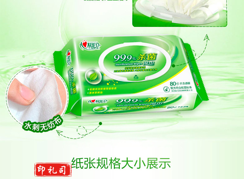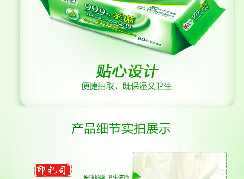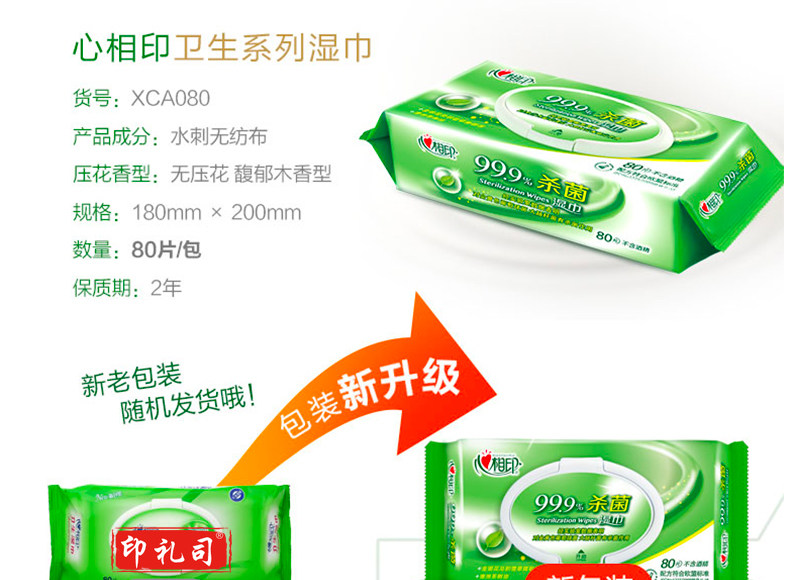 心相印 卫生湿巾 80抽/包 家用大包去菌卫生湿巾纸