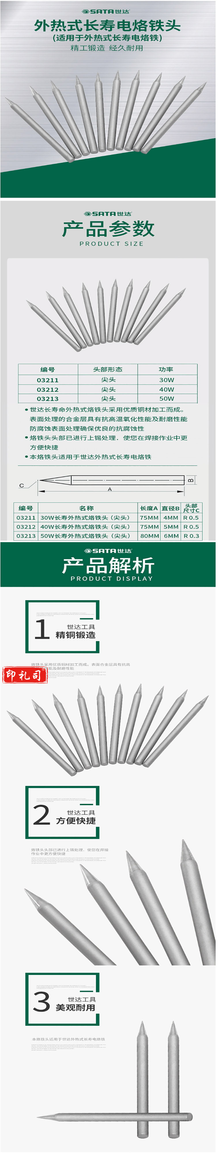 世达 03213 50瓦外热式长寿烙铁头 尖头 计价单位:支
