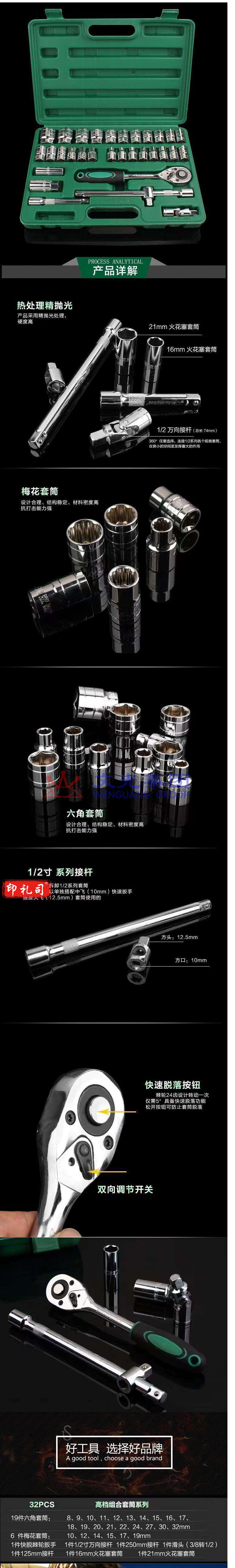 汽修工具箱套装 32件镜面套筒扳手 (快脱棘轮)
