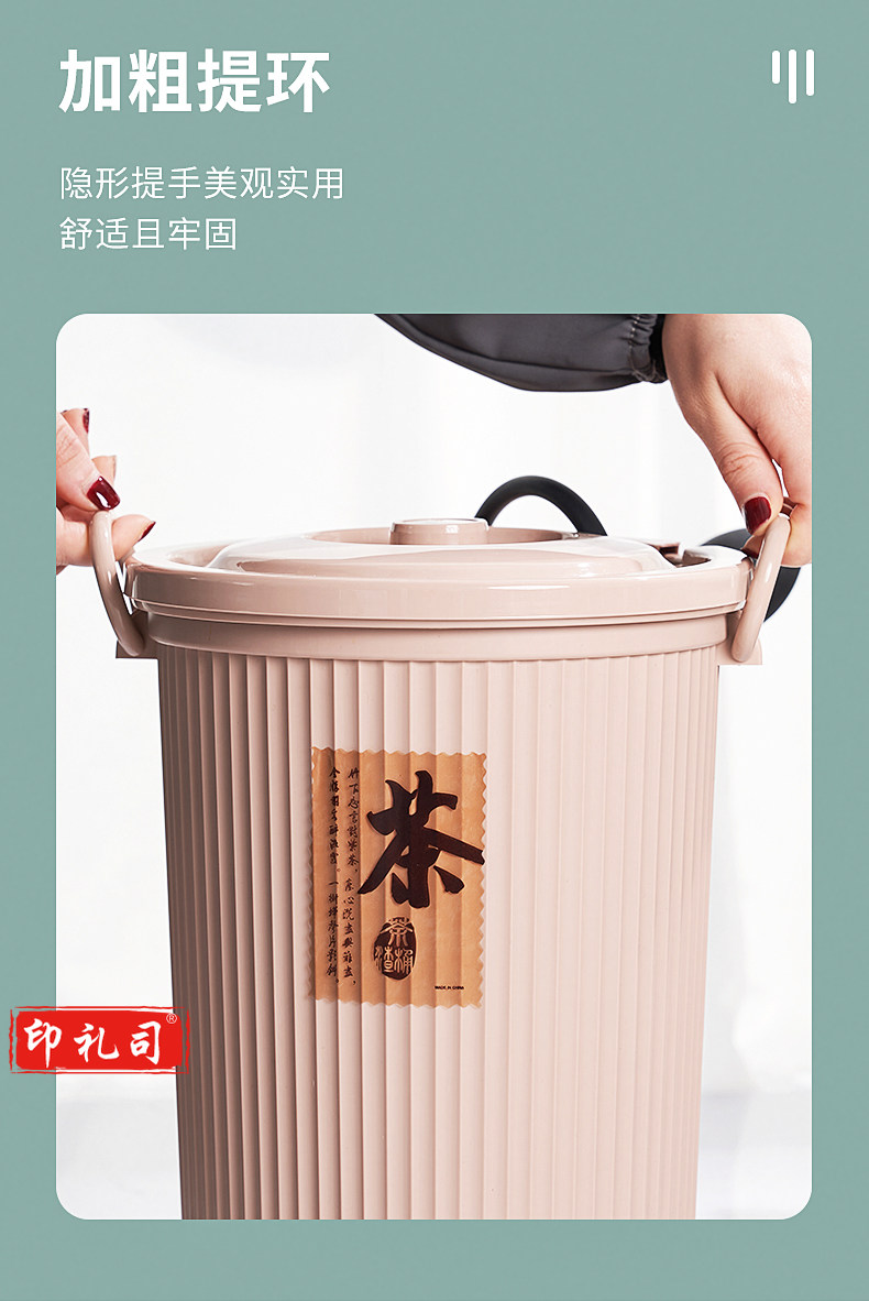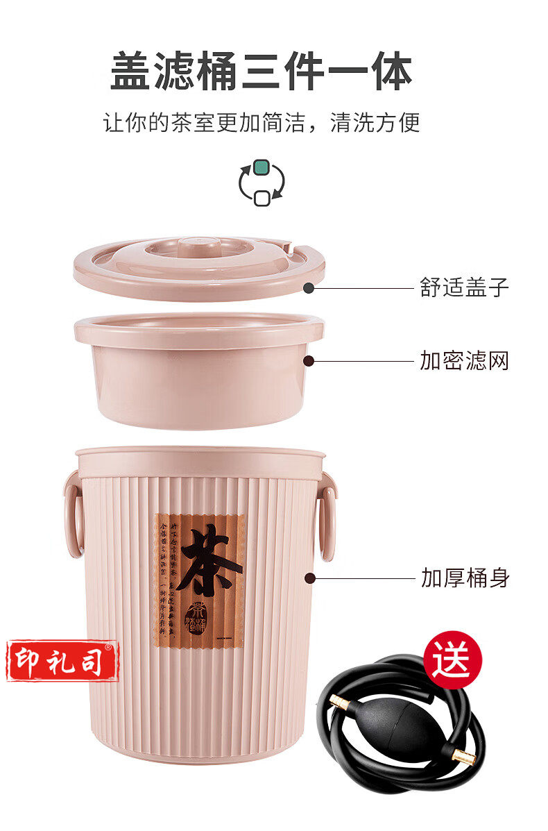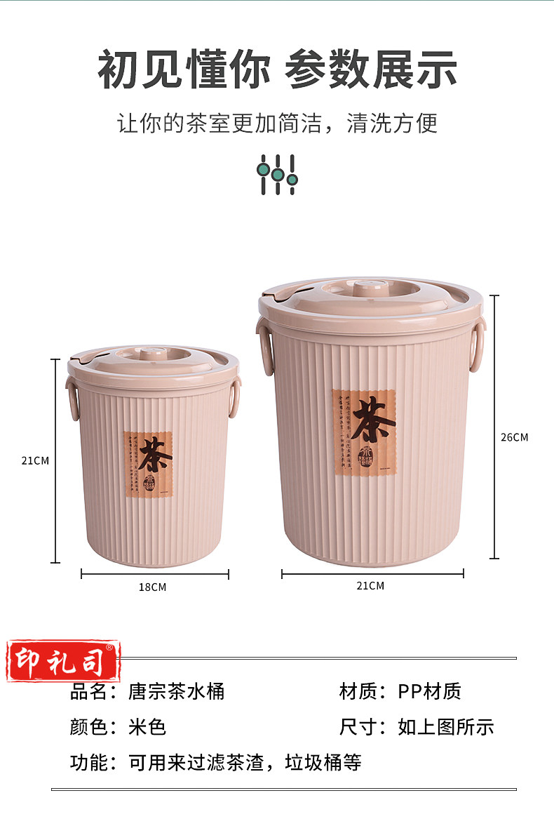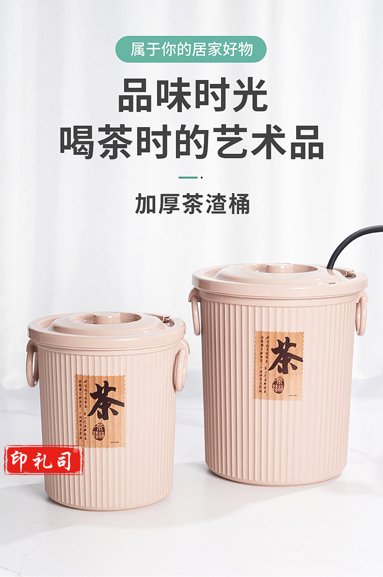 带盖茶渣桶 加厚塑料 排水桶茶叶垃圾桶 废水桶 滤茶桶 储茶桶 加配 排水管 米色中号 C6595