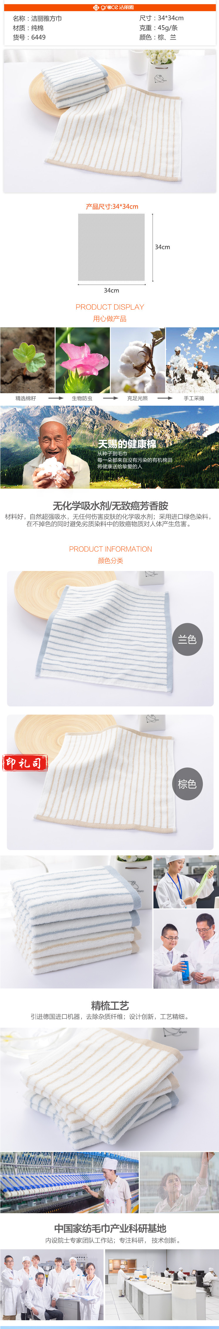 洁丽雅 毛巾 方巾小毛巾 6449 34*34cm 45g