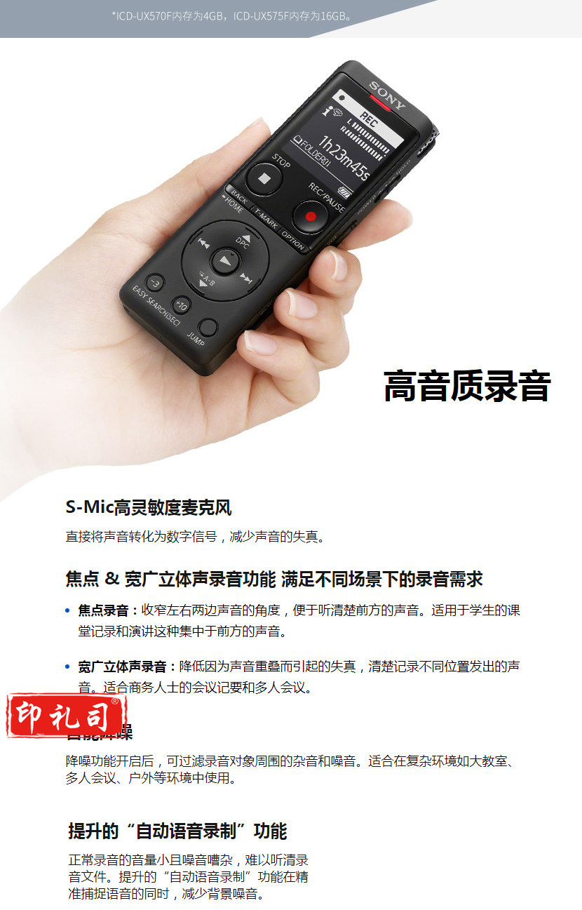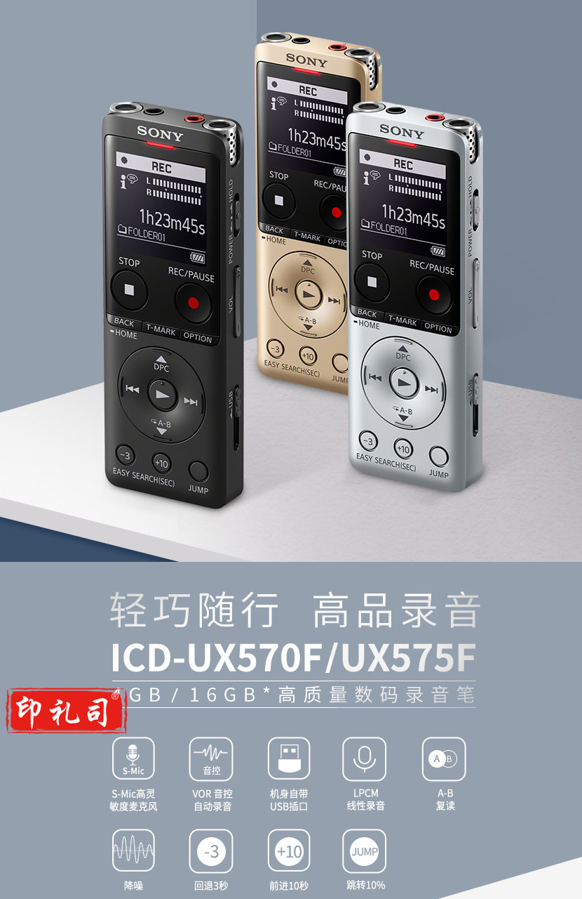 索尼(SONY) ICD-UX575F 16G内存数码录音笔 AB复读 (ICD-UX575)黑色