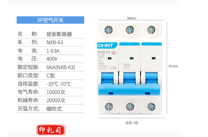 正泰(CHNT) NXB-63 3P C63 小型断路器 空气开关