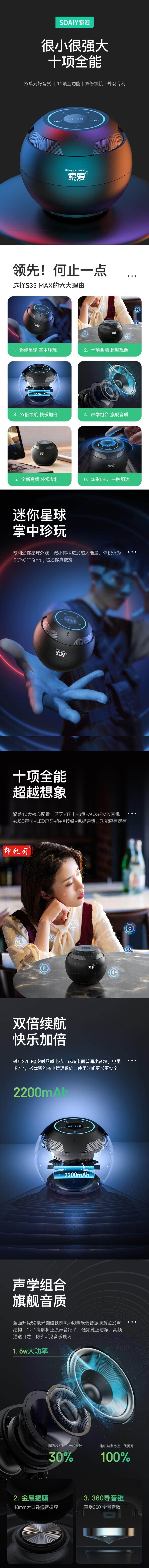索爱 蓝牙音箱小音响便携式U盘FM收音机3D环绕睿智黑S35max