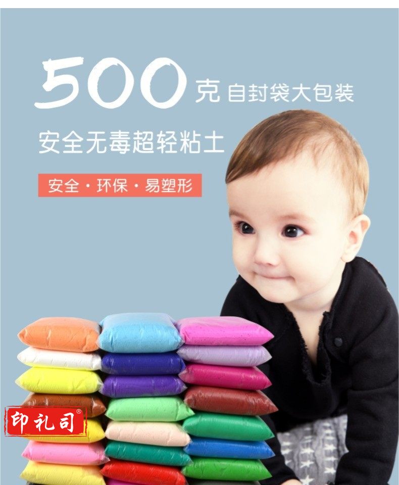 多彩艺500克24色超轻粘土 大包装橡皮彩泥太空泥儿童diy手工黏土玩具