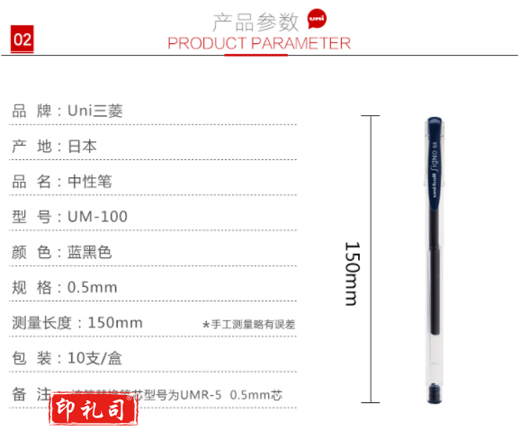 三菱(Uni)UM-100 黑色 中性笔签字笔0.5mm