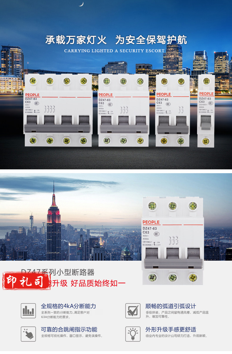 人民电器 DZ47-60(50A/2P) 断路器 空气开关