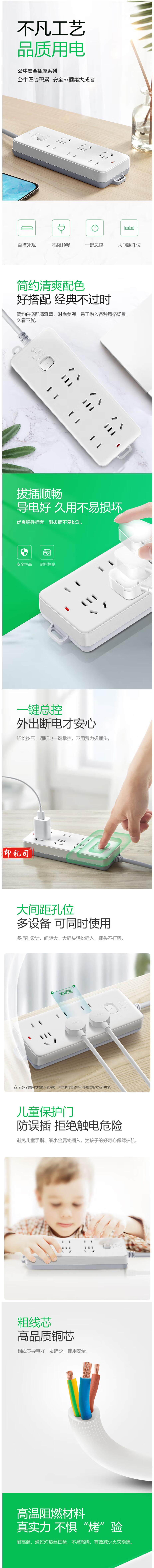 公牛 GN-402 6位总控全长3米 新国标插座/插线板/排插/插排/接线板/插线板