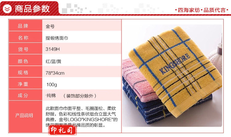 金号 面巾 3149H 提缎纯棉毛巾10/包 (每箱150条)