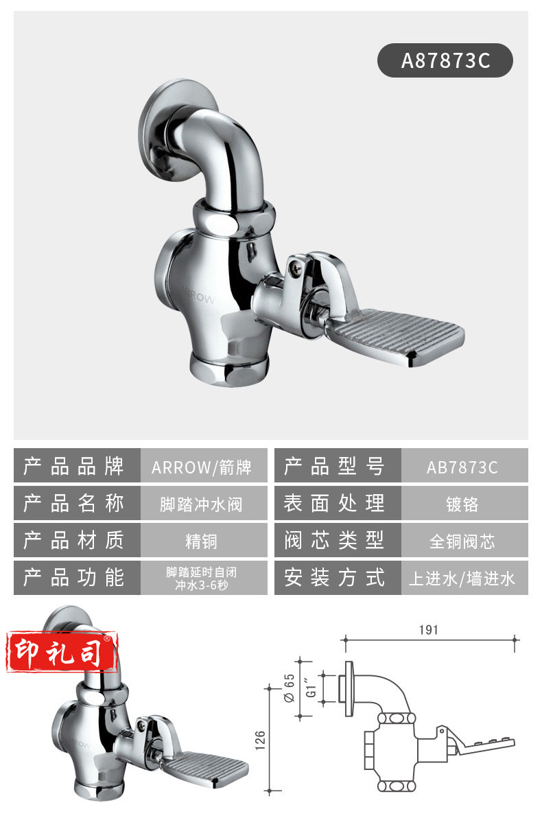 箭牌(ARROW)卫浴蹲便器冲洗阀 A87873C 延时大便阀G1脚踏延时阀蹲厕冲洗阀