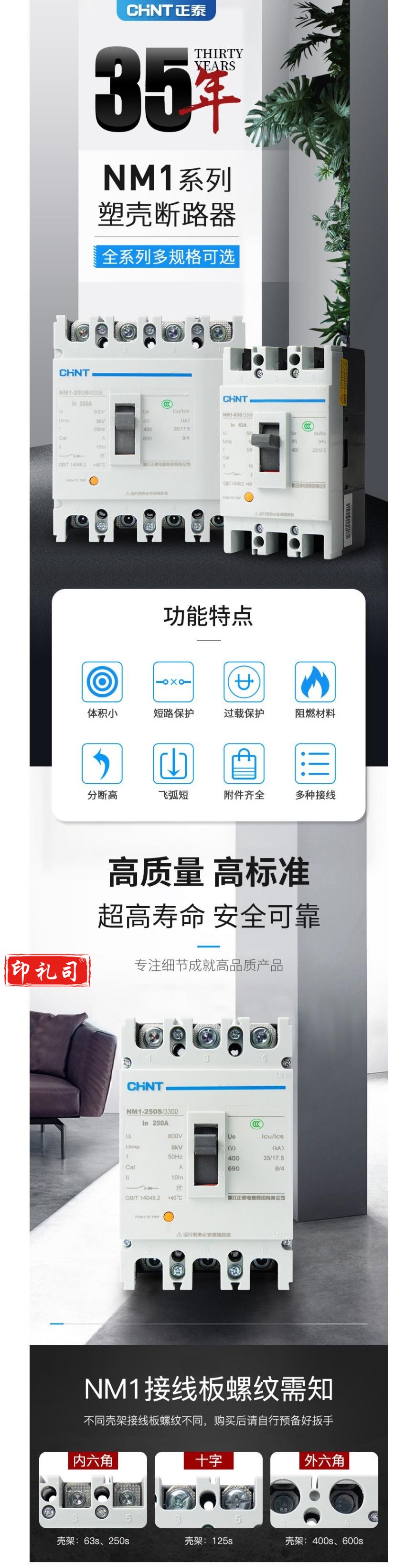 正泰(CHNT)NM1-250H/3300-200A 塑壳断路器 三相3P空气开关 过载短路保护器
