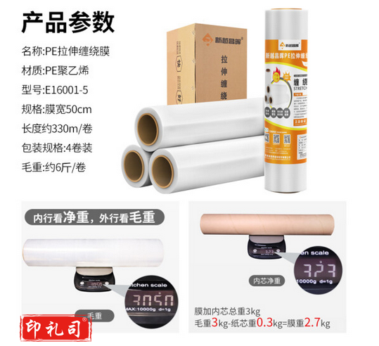 新越昌晖缠绕膜50cm*330米膜净重10.8kg/整箱4卷 PE拉伸包装打包物流托盘防水防尘工业捆扎保护薄膜E16001-5
