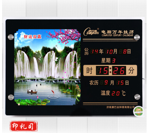 康巴丝(Compas)LED数码万年历钟表客厅挂钟夜光日历电子表
