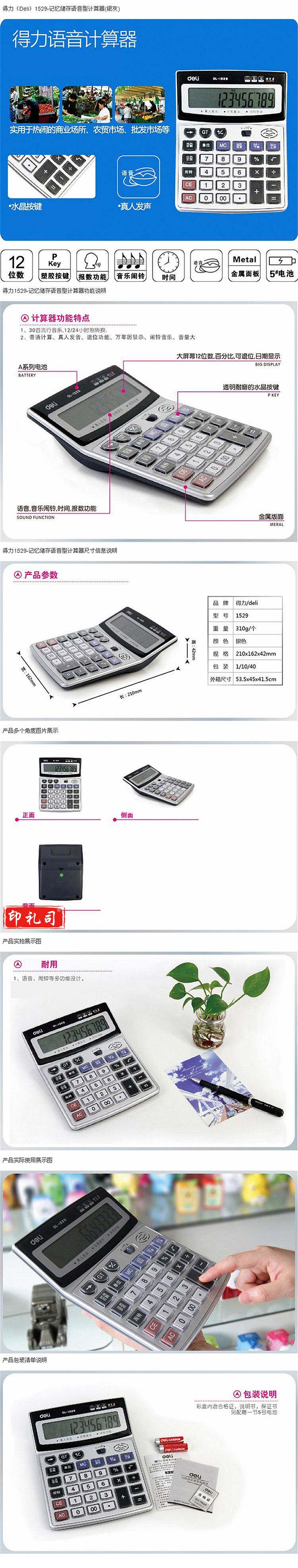 得力 1529 语音计算器 (单位:台) 银灰