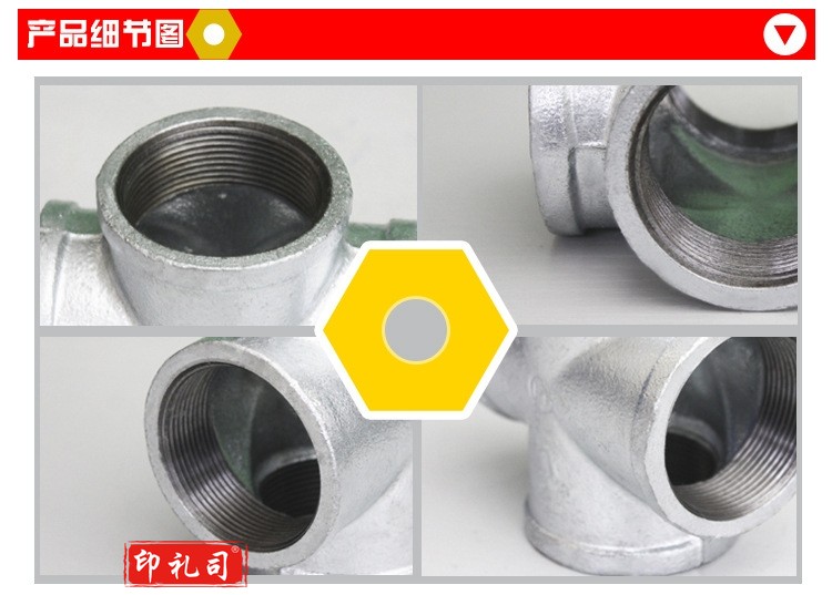 镀锌玛钢丝扣管件丝口管道内螺纹变径四通 65 15个/包