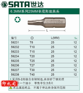 世达59232 5件套6.3MM系列25mm长花型旋具头T10 计价单位:套