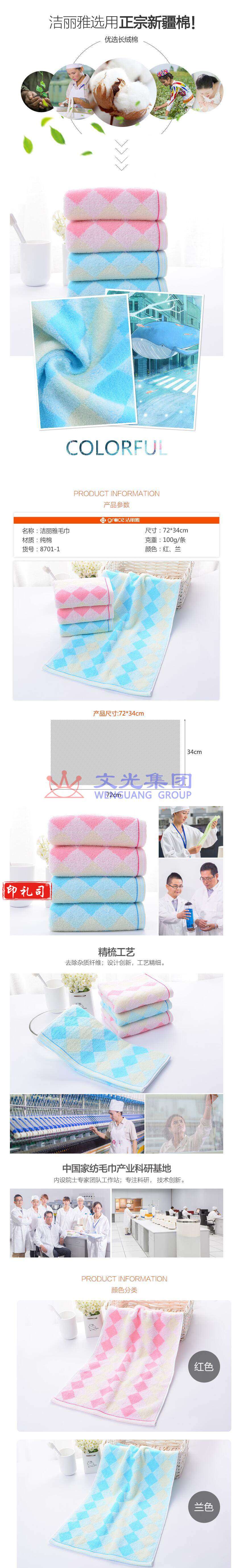 洁丽雅 8701-1 34*72cm 菱形格毛巾面巾