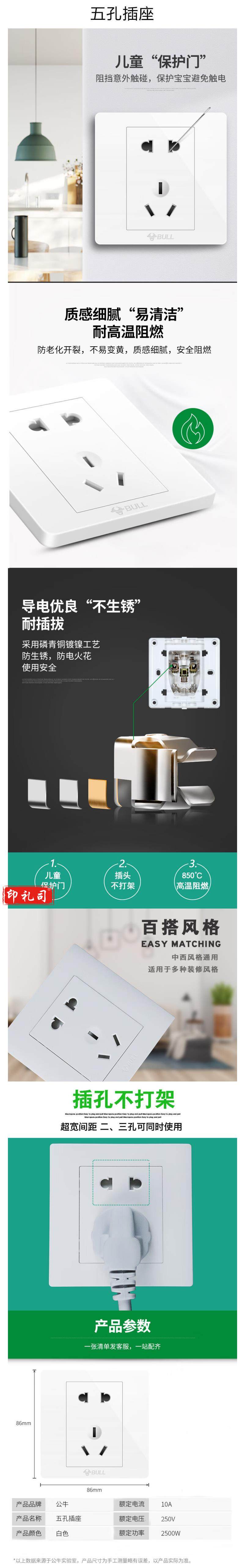 公牛(BULL) 五孔插座 G32系列 象牙白 86型插座 G32Z223 10A
