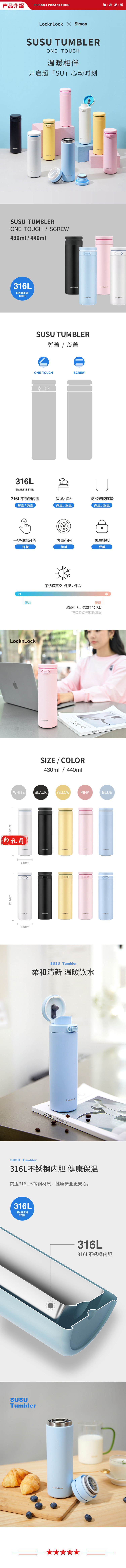乐扣乐扣 locknlock LHC3274 316不锈钢弹跳保温杯 商务便携保温保冷随手杯 430ml 蓝色