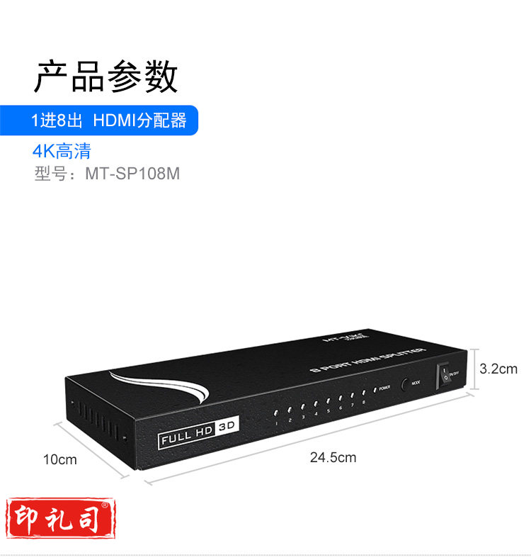 迈拓维矩(MT-viki) hdmi分配器高清4K分屏器音频1进8出(MT-SP108M)