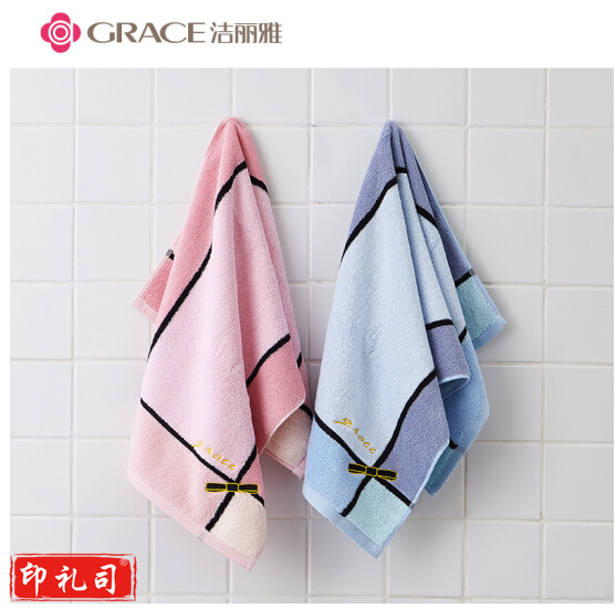 洁丽雅 毛巾礼盒 柔软吸水成人全棉蝴蝶结提花洗脸毛巾 两条装(