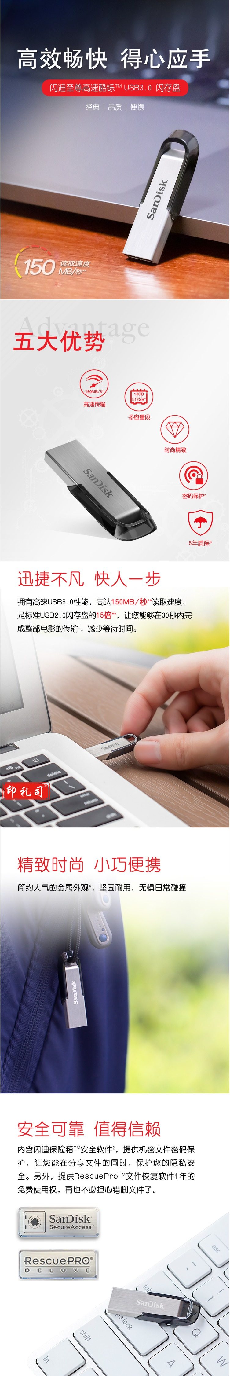 闪迪 (SanDisk) 32GB USB3.0 U盘CZ73酷铄 读速150MB/s