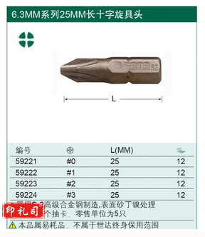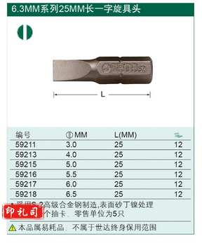 世达59215 5件套6.3MM系列25mm长一字型旋具头5mm(计价单位:套)