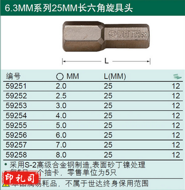 世达59255 5件套6.3MM系列25mm长公制6角旋具头5mm 计价单位:套