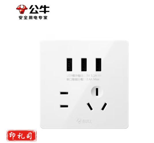 公牛(BULL)开关插座 G12系列 五孔带3位USB插座86型插座面板G12E536S 白色