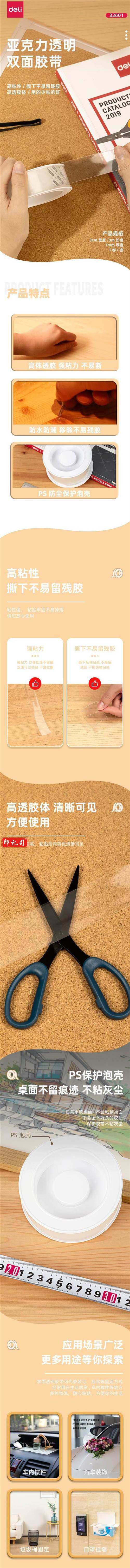得力33601 30mm*3m*1mm纳米强力无痕魔力胶带 透明无痕双面胶