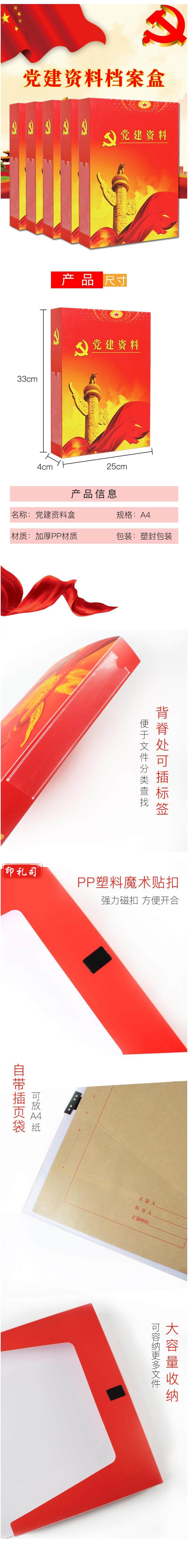 党建档案盒 红色塑料党建文件盒 33*25CM 侧宽40mm 加厚塑料文件资料盒